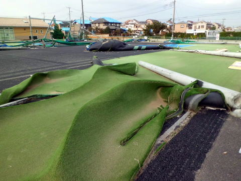 上の写真のとおり、スタッフルームのガラスが粉々。スタッフがくつろいでいたら・・・恐ろしい!