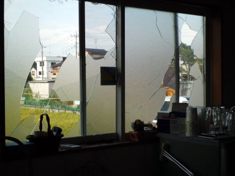 上の写真のとおり、スタッフルームのガラスが粉々。スタッフがくつろいでいたら・・・恐ろしい!